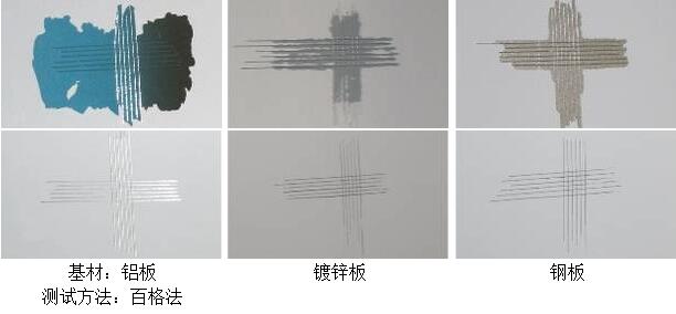 金屬烤漆附著力促進劑的應用可以有效的改善油漆漆膜對各種難附著金屬如鋁(鋁合金)、鋅(鋅合金)、不銹鋼等的附著,增加漆膜的延展性與耐沖擊性能,高溫烘烤不會變色,通過底材與漆面之間的牢靠附著力性能,解決金屬底材噴烤漆掉漆或百格附著力、鹽霧、水煮、高溫等附著力測試通過不了的問題。